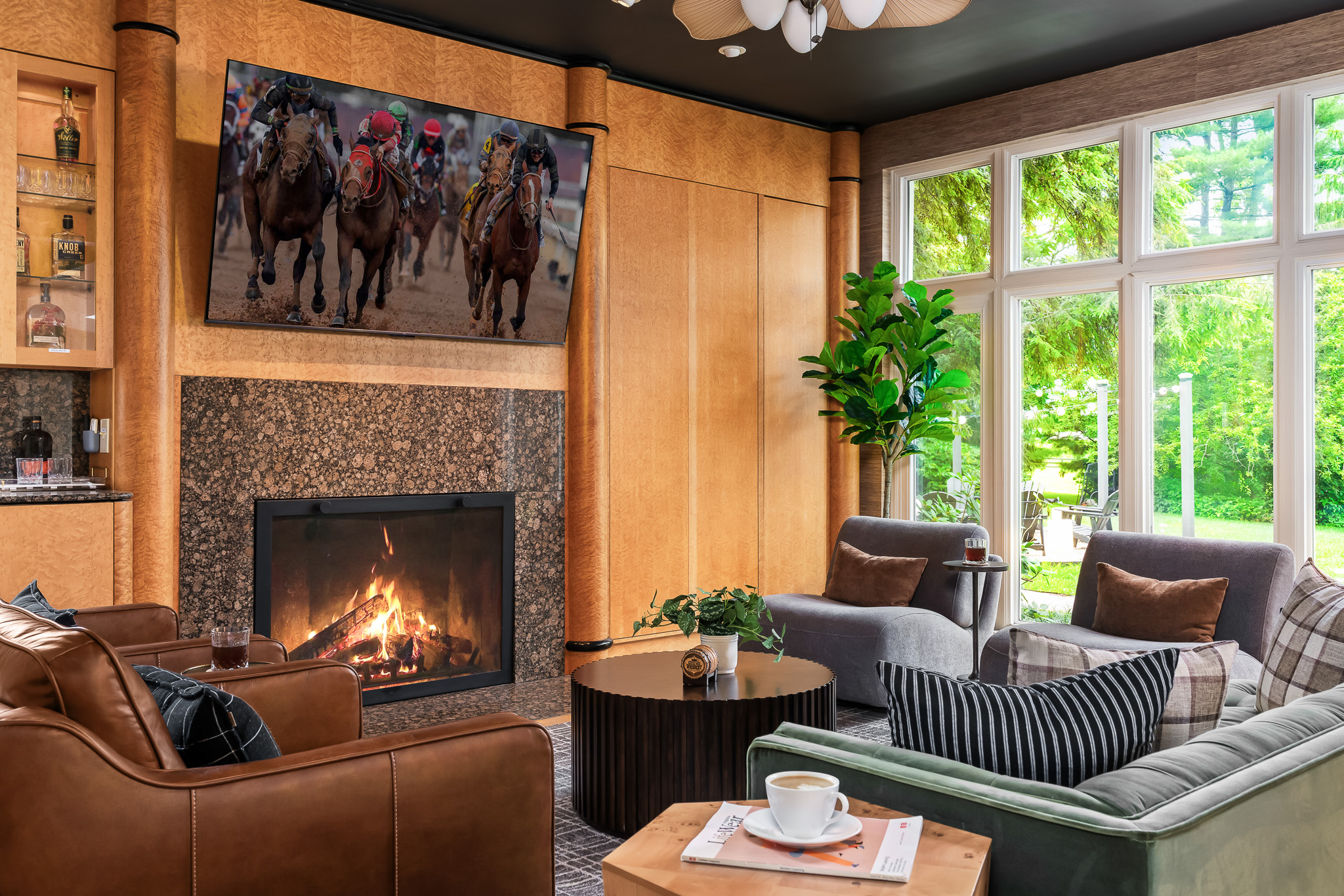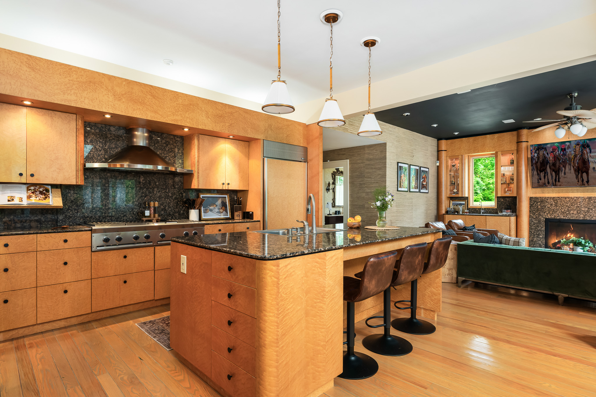 ◘ The Bourbon 🥃 Lounge with Bird's eye Maple cabinetry