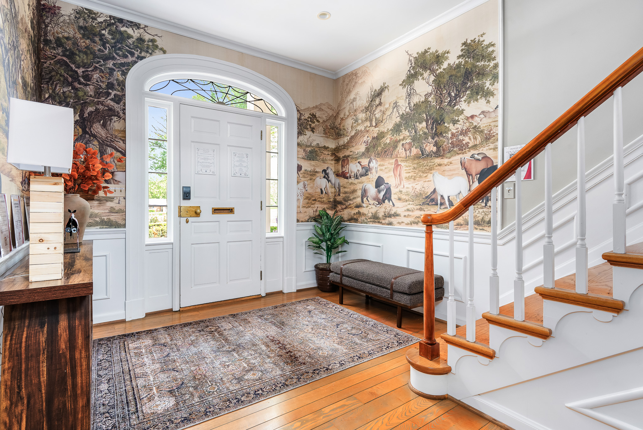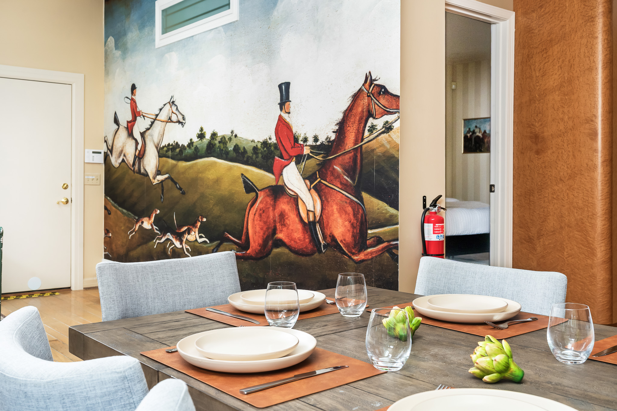 ♥ Mural wallpaper: Vintage fox hunt scene and barrel ends
