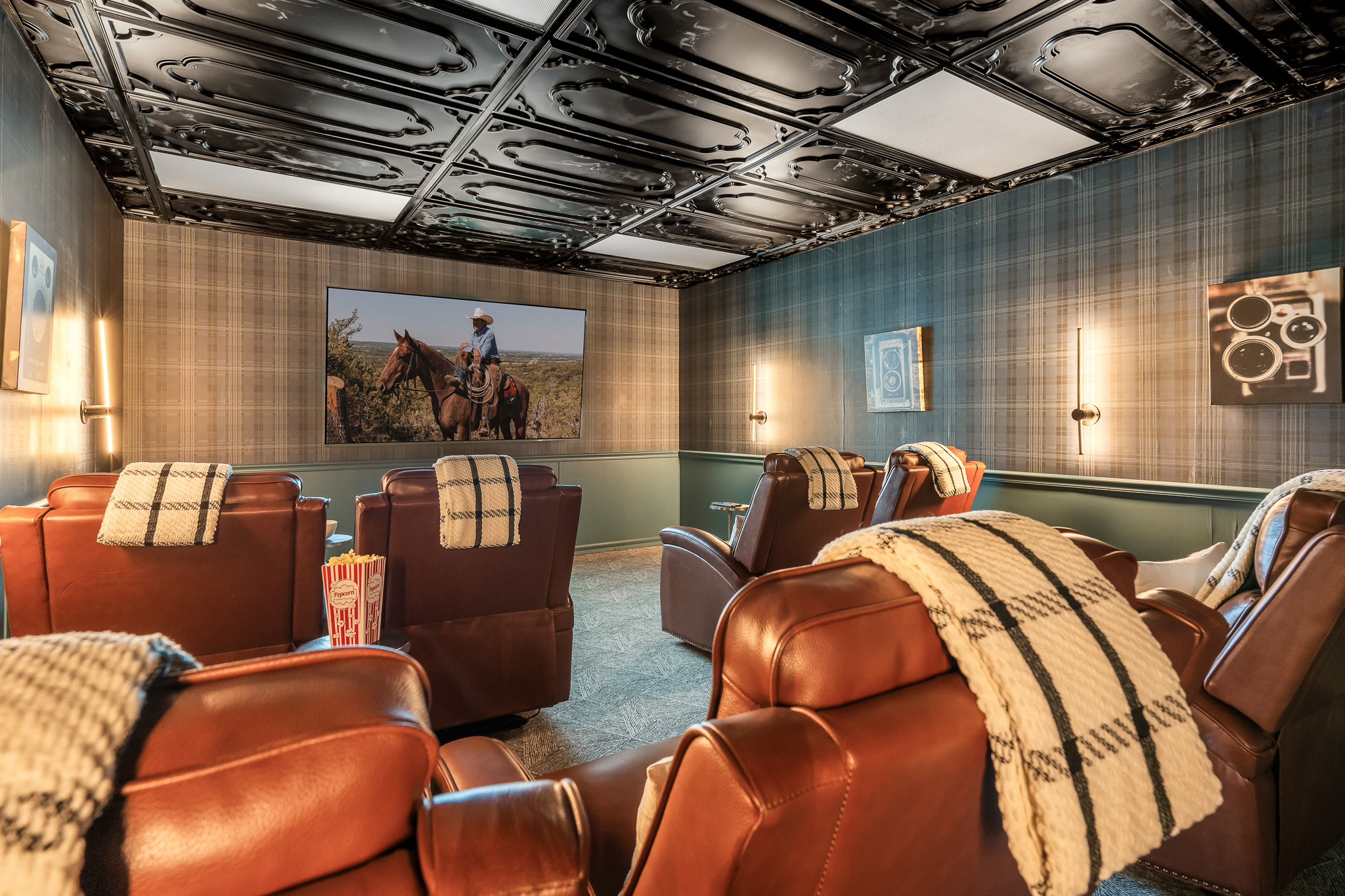 ♥ Deep plaid wallpaper & teal wainscoting