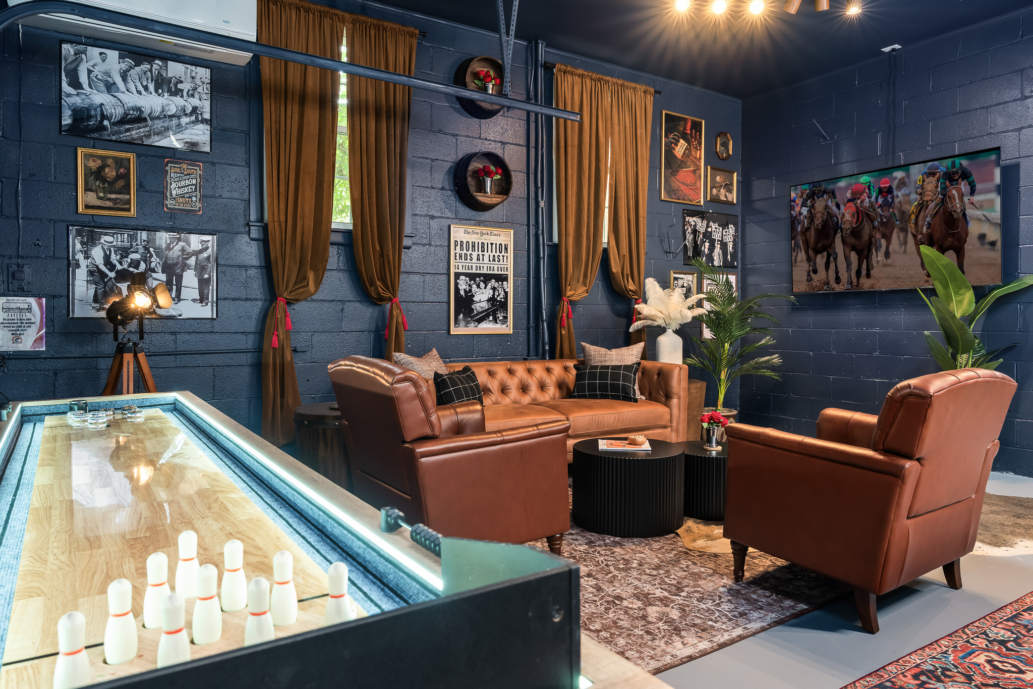 ♥ Historic gallery wall with prohibition protest prints & bourbon culture memorabilia