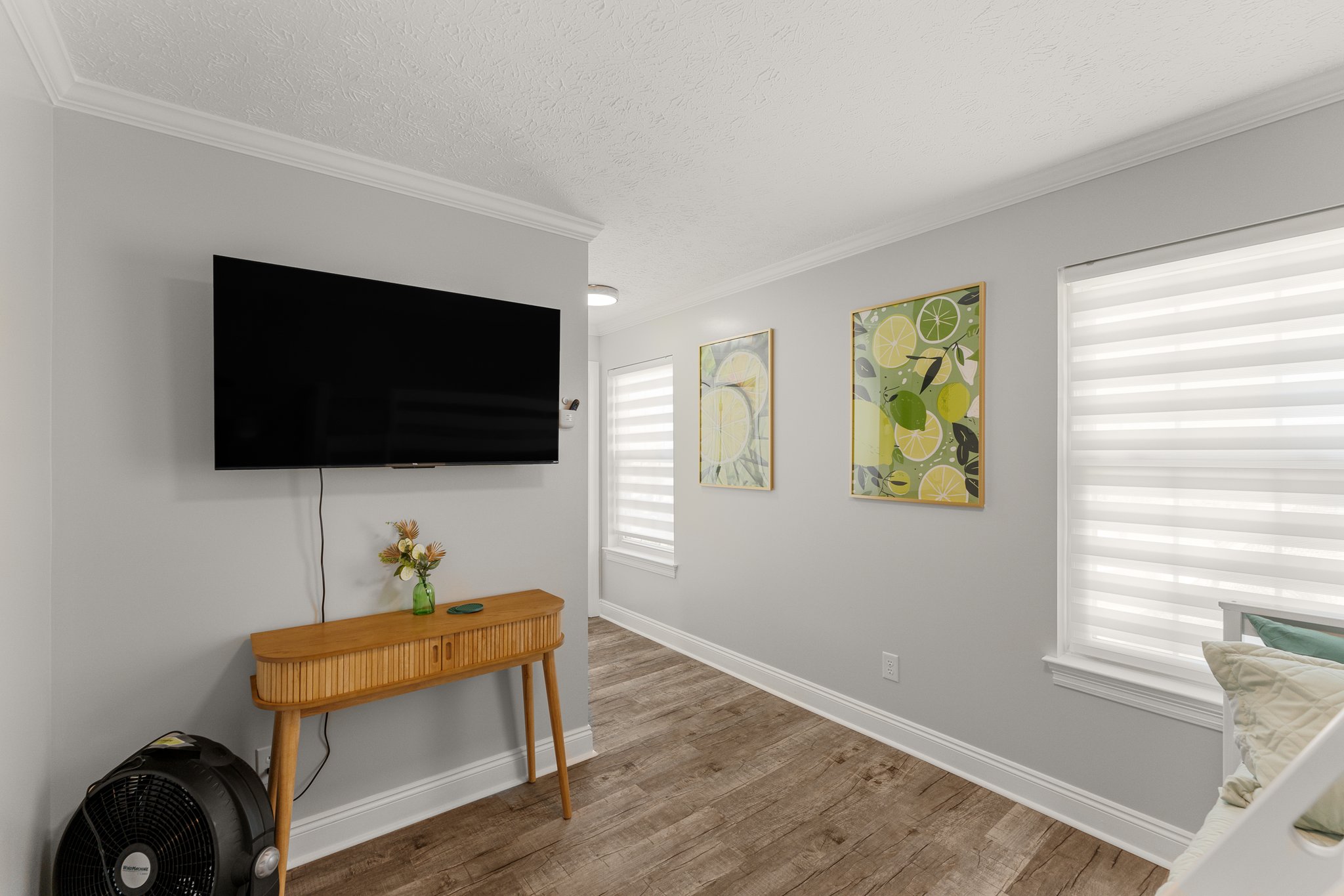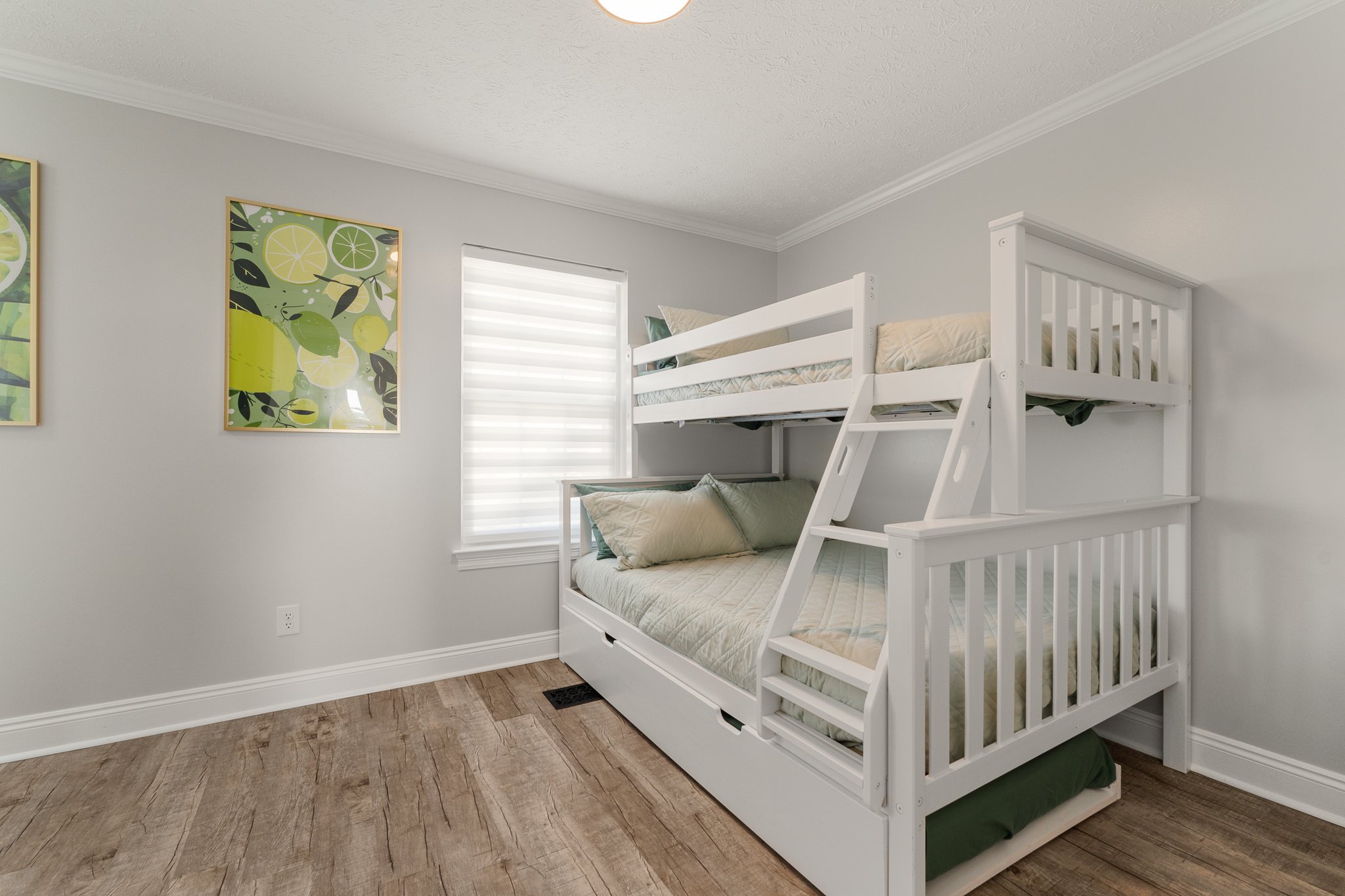 ◘ Front Bedroom: Twin on full bunk bed with trundle, closet, Roku TV