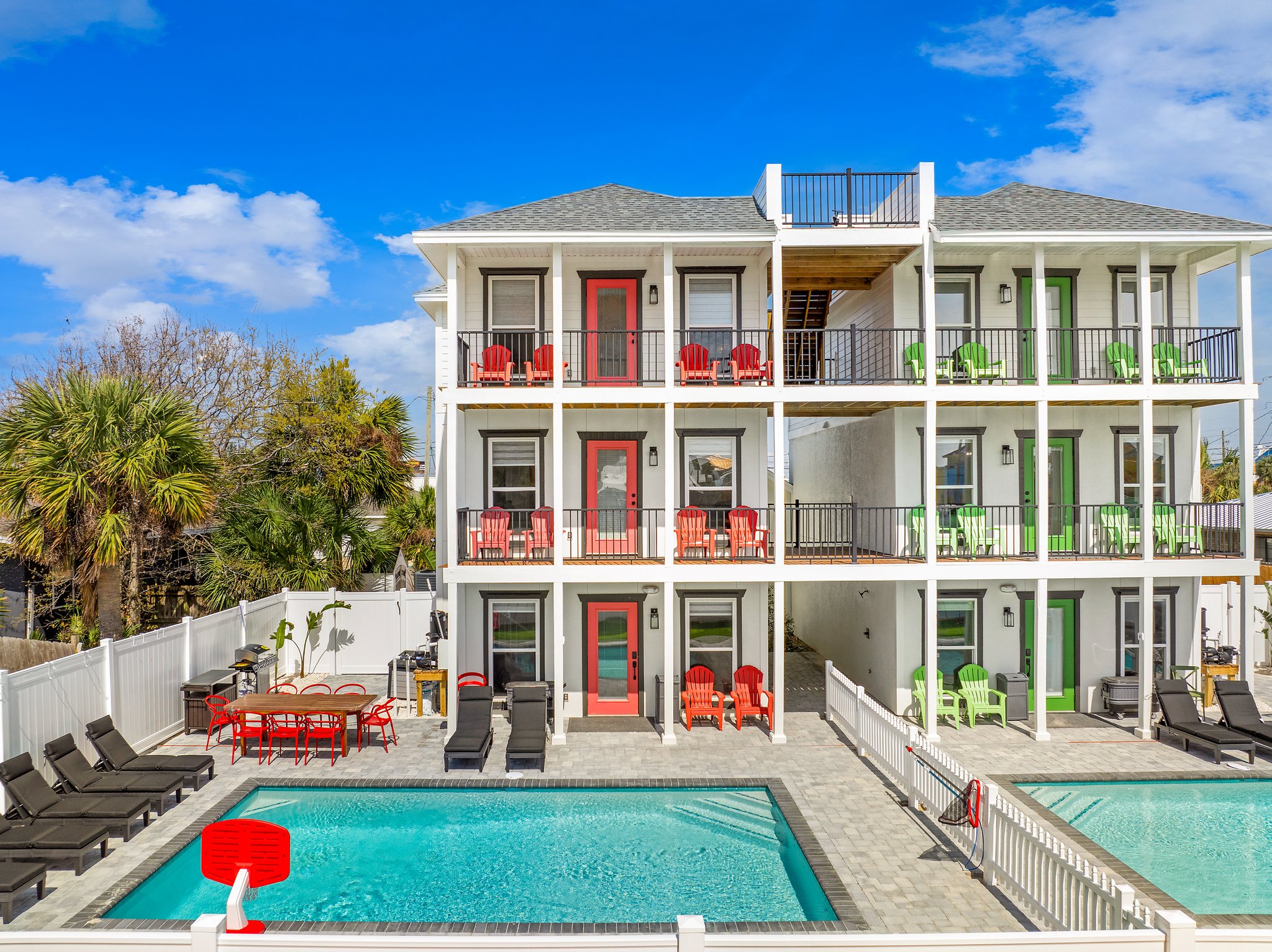 Welcome to Sublime & One In A Melon by LIVE & TRAVEL HOMES! Double the fun with these lime and watermelon-themed beach homes, each with a private pool, game room, grill, and endless entertainment for all! Perfect for large families or groups who want to stay close while enjoying plenty of space and privacy. Just steps from beach access #2 and #3, amazing restaurants, and St. Andrews Park, this colorful and playful paradise promises nonstop fun and relaxation. Book your beach escape today!