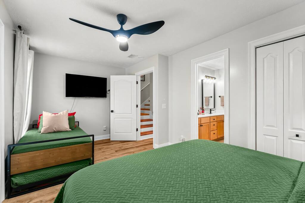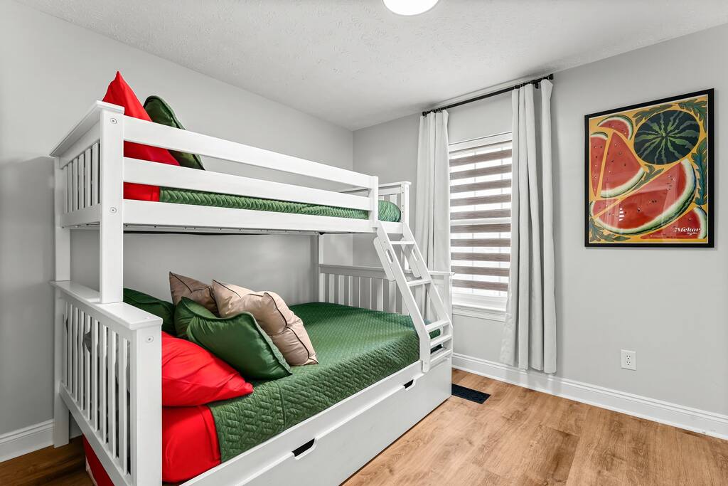 ◘ 3 king beds, 1 twin daybed with trundle, 1 twin on full bunk bed with trundle. Total of 8 beds. Sleeps 11.
