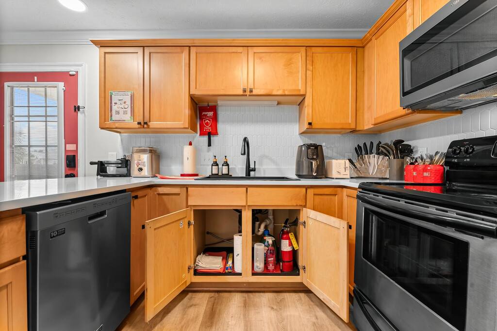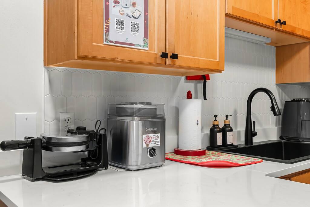 We’ve stocked the home with a starter kit of laundry pods, dishwasher detergent, and toiletries to get you going. For longer stays, you might need to pick up a few extras.