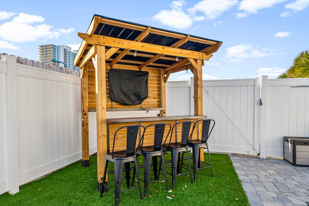 ◘ Outdoor bar 🍹🥂🍸with Roku TV 📺, string lights & chairs
