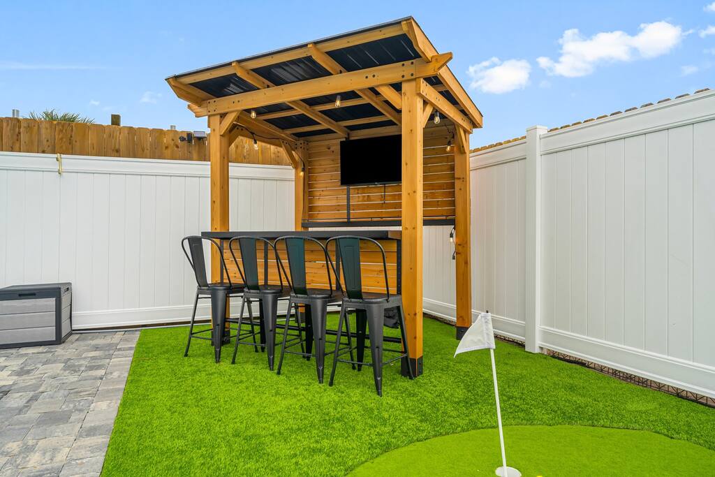 ◘ Outdoor bar 🍹🥂🍸with Roku TV 📺, string lights & chairs