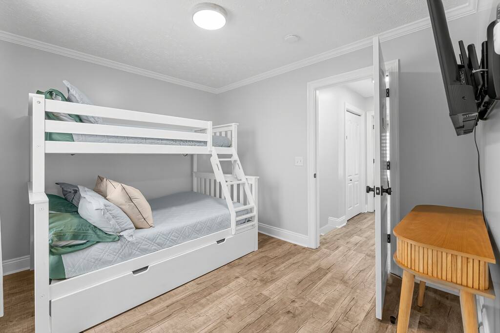 ◘ 3 king beds, 1 twin daybed with trundle, 1 twin on full bunk bed with trundle. Total of 8 beds. Sleeps 11.