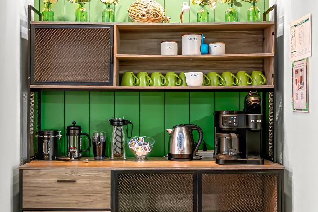 ♥ K-cup pods, ground coffee, tea, sugar & creamer provided